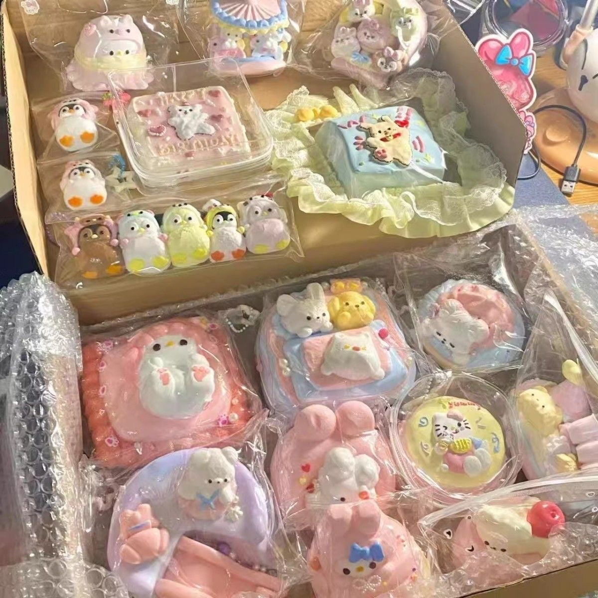 - Adorable Detailed Designs: From chubby cat loafs to realistic-looking pastries (cakes, donuts) and fluffy bunnies, every squishy has cute, eye-catching details.